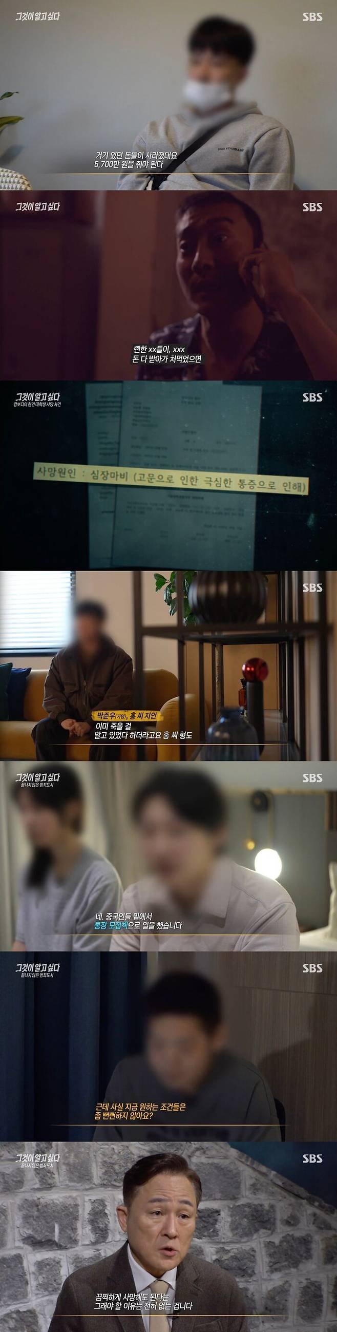 그리고 이 과정에서 도주하려다 적발된 한국인이 중국인 조직원들에게 심한 고문을 당하기도 했다고 했다.