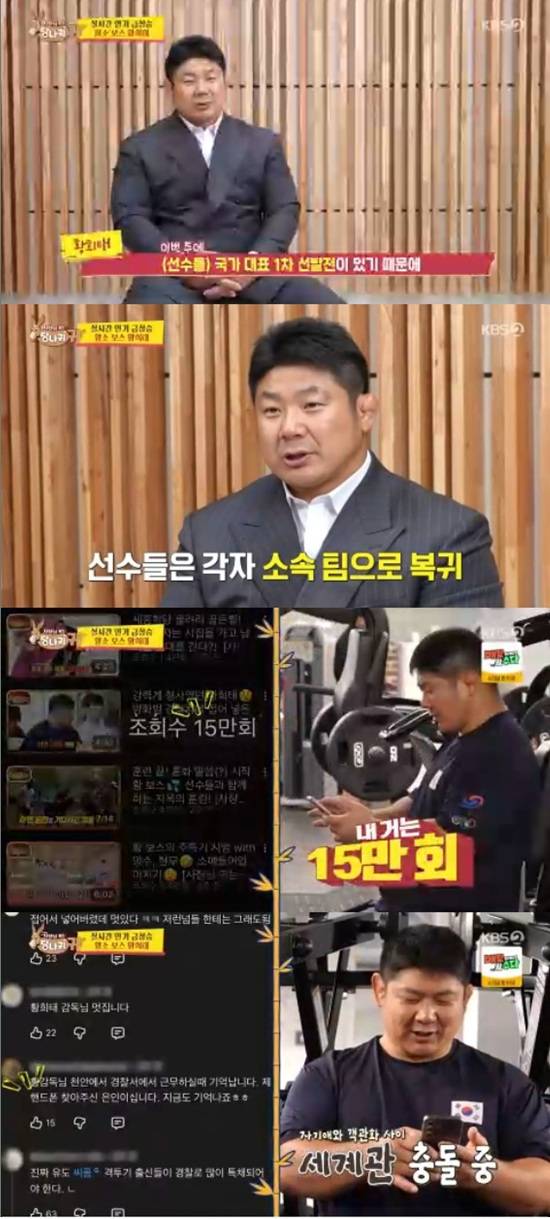 황희태는 김정석에 대해 "현재는 교정 트레이너 길로 가고 계신다"면서 지난 도쿄올림픽 때 국가대표 올케어 팀의 수장이었다고 전했다.