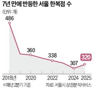 23일 서울시 상권분석 서비스에 따르면 올해 2분기 기준 서울지역 한복점은 320곳으로 집계됐다. 전년 동기(307곳)보다 13곳 늘었다. 서울 한복점 수는 2018년 486곳으로 정점을 찍은 뒤 해마다 줄어들다가 올해 반등했다.
