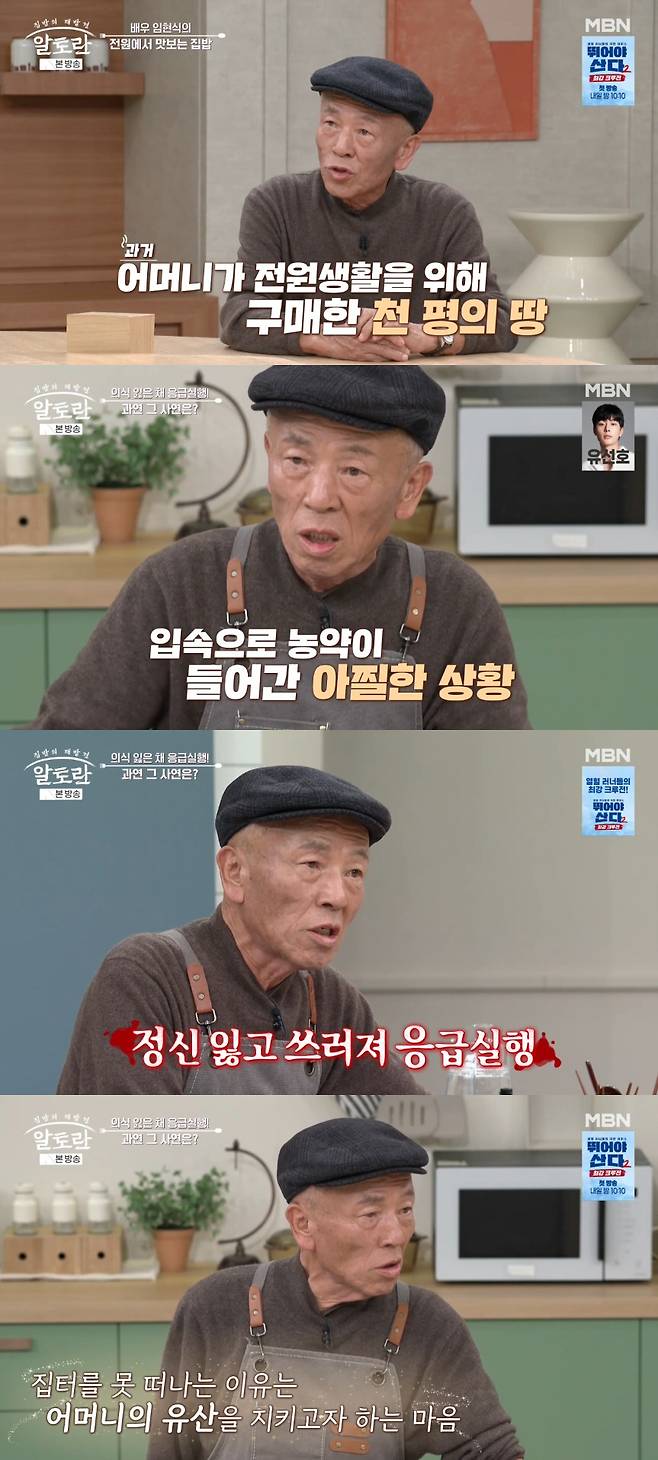 배우 임현식이 전원생활 중 농약을 삼켜 응급실에 실려 갔던 아찔한 경험을 털어놓았다.