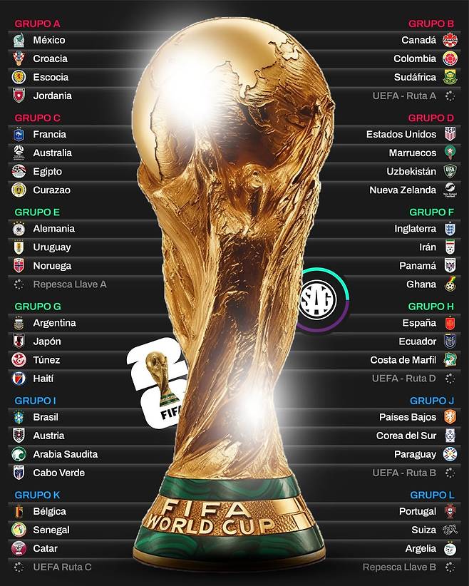 남미 축구 매체 SAG풋볼은 지난 22일(한국시간) 2026 북중미 월드컵 가상 조 추첨 결과를 공개했다.