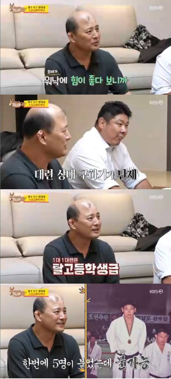 김정석은 "워낙 힘이 좋아서 파트너를 구하기가 쉽지 않았다. 힘 차이가 많이 나서 5명이 붙어도 쉽게 제압이 안 됐다"고 황희태는 학창시절 탈고등학생급이었다고 했다.