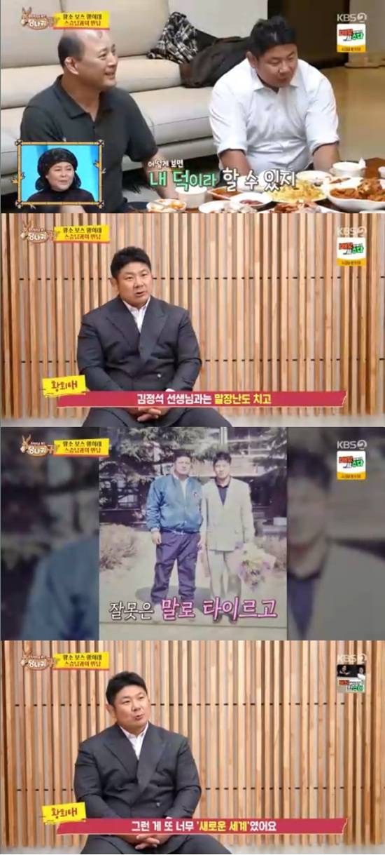 이날 황희태는 이승엽, 김한수 선수를 데리고 고등학교 유도부 시절 은사님인 김정석을 만났다.