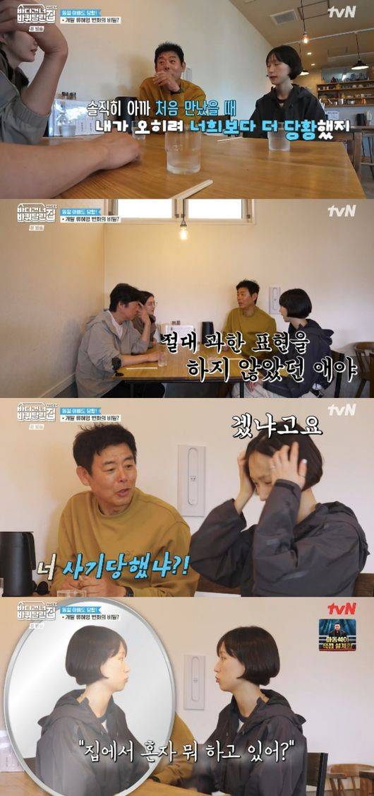 류혜영은 “근데 지금 서른 넘으니까 농담 밖에 안 남았다”라고 너스레를 떨었고, 성동일은 “원래 안 이랬다. 그래서 얘가 큰 실연을 겪었나 했다”라며 “솔직히 아까 처음 만났을 때 내가 오히려 너희보다 더 당황했다. 절대 그런 모습을 표현하지 않았던 애”라고 털어놨다.
