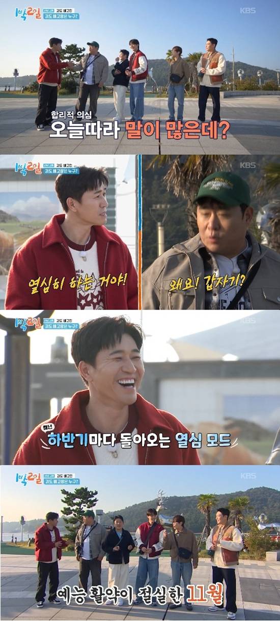 23일 방송된 KBS 2TV '1박 2일 시즌4'에서는 김종민, 문세윤, 조세호, 이준, 딘딘, 유선호가 전남 고흥에서의 여행을 즐기는 모습이 전파를 탔다.