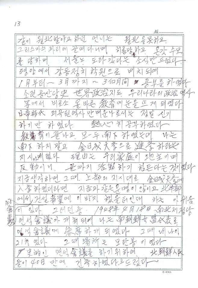 | ▲ 류금수 강동정치학원 교육 시절 류금수 자전 글 |