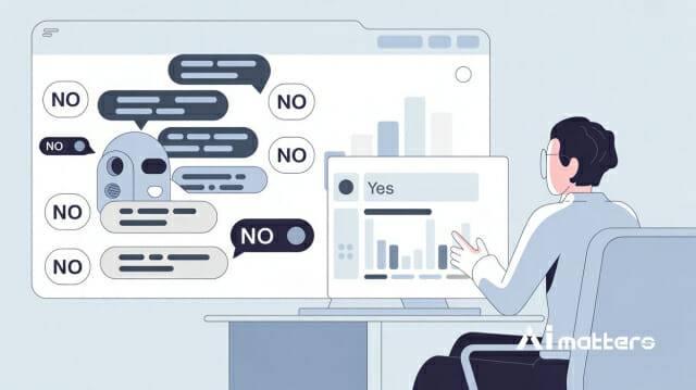 A: 연구에 따르면 AI는 확신이 없으면 일단 "아니요"부터 말하는 습관이 있습니다. 답을 모르는 경우의 85.7%에서 부정 답변이 급증했는데, 이는 AI가 불확실할 때 "아니요"를 기본값처럼 사용한다는 뜻입니다.