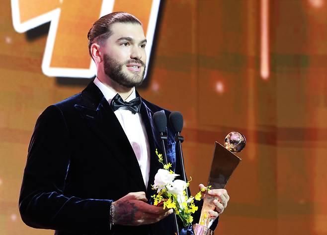 | ▲ 2025 KBO 시상식 MVP는 한화의 폰세 24일 서울 송파구 롯데호텔 월드에서 열린 2025 신한 SOL뱅크 KBO 시상식에서 정규시즌 최우수선수(MVP)로 선정된 한화의 폰세가 수상 소감을 밝히고 있다 |