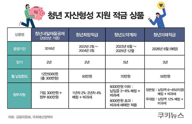 청년 자산형성 지원 정책의 일종인 청년 적금은 정권이 바뀔 때마다 형태를 달리해 왔다.