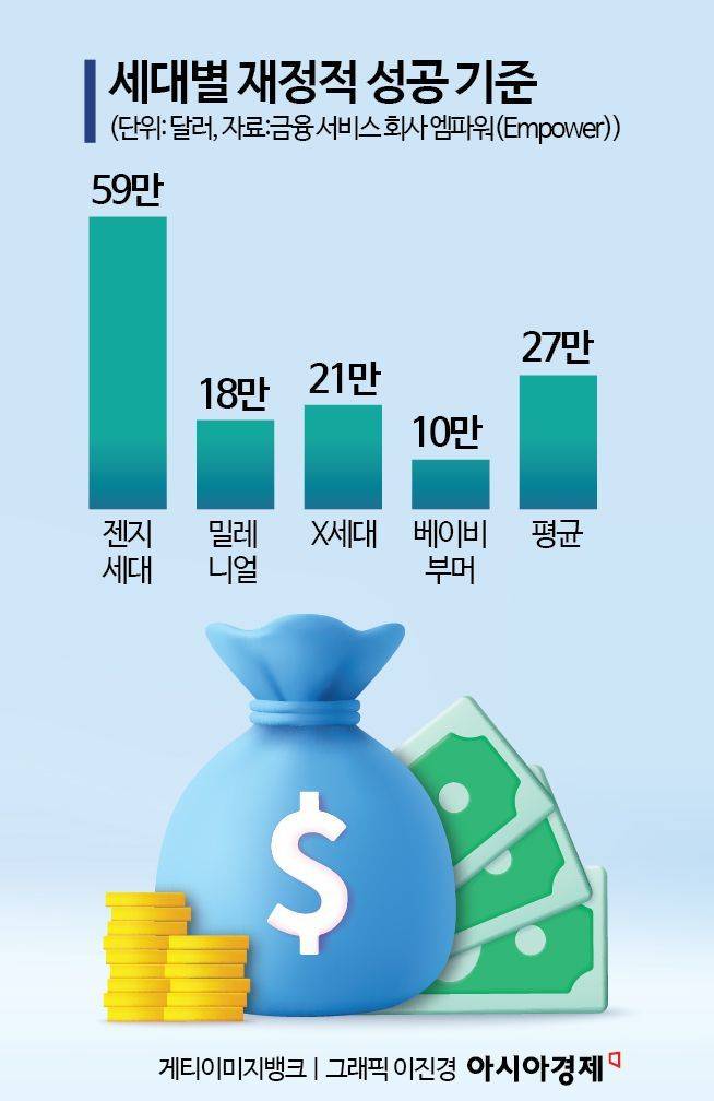Z세대들은 이전 세대보다 높은 소득을 기대하며 훨씬 유연하게 커리어 방향을 바꾼다. 금융 서비스 회사 엠파워(Empower)가 최근 발표한 '성공의 비결' 보고서에서 Z세대는 재정적 성공의 기준을 연봉 약 59만 달러(약 8억7000만원)로 제시했다. 이는 베이비붐 세대가 꼽은 기준인 약 10만 달러(약 1억5000만원)의 6배에 달한다.