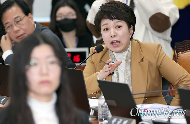 | ▲ 김은혜 국민의힘 의원이 지난 18일 서울 여의도 국회에서 열린 운영위원회 전체회의에서 김용범 대통령실 정책실장에게 질의하고 있다. |