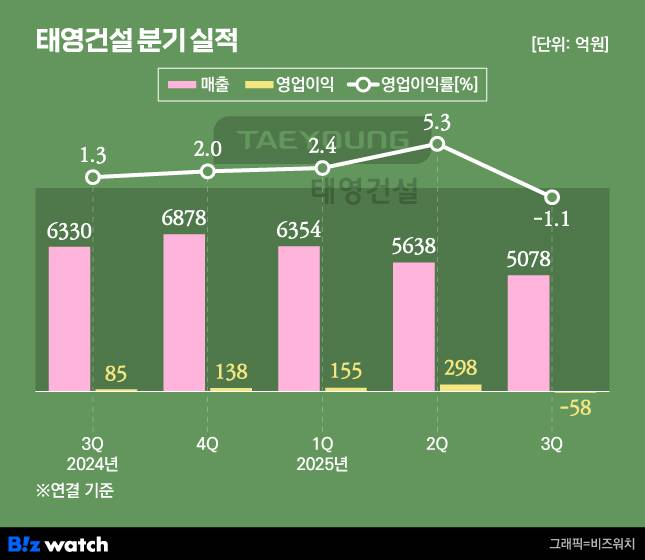 태영건설 관계자는 "대형 사업장 준공 이후 신규 사업장을 이제 막 착공하는 시점"이라면서 "매출이 당분간 좋지 못할 수 있으나 적자는 공사 손실을 반영한 일시적 결과"라고 말했다.