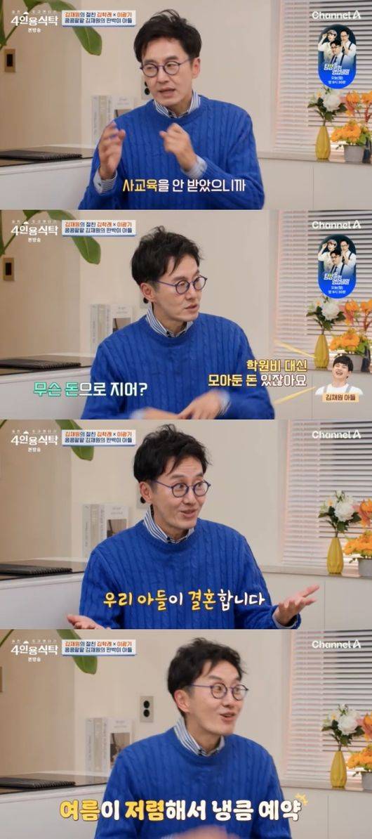 24일 방송된 채널A ‘절친 토큐멘터리 - 4인용식탁’(이하 4인용식탁)에는 아나운서 김재원이 출연, 배우 이광기, 코미디언 김학래를 초대해 이야기를 나누었다.