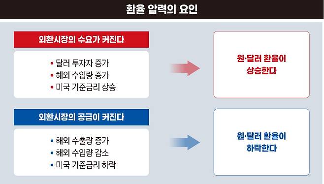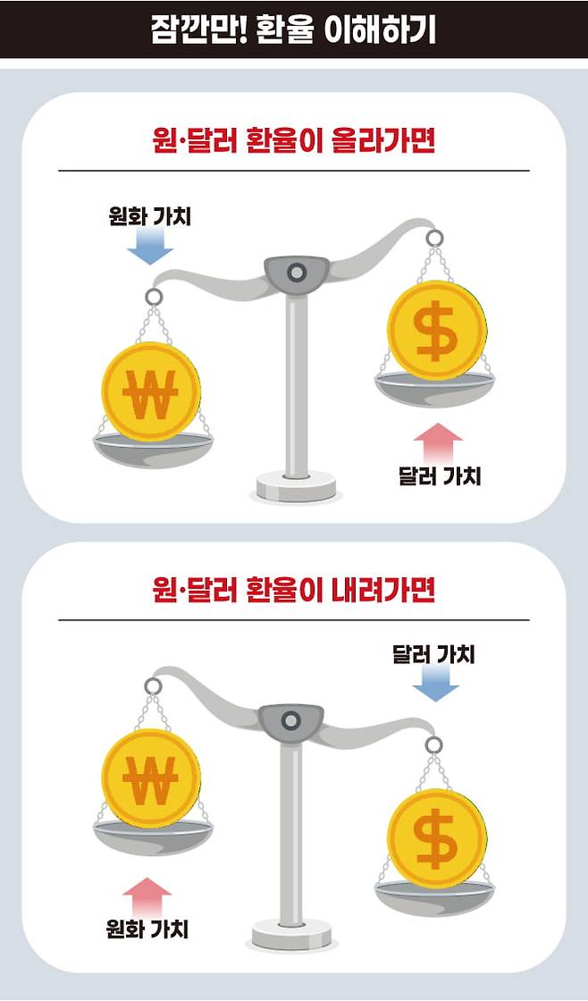 미국 소비자들은 1달러에 1000원이던 원·달러 환율이 1500원으로 오른다면 1달러만 주고도 1500원짜리 물건을 살 수 있게 된다. 값이 저렴해지니 한국 물건을 찾는 미국 소비자들이 늘고 한국 제품 수출은 경쟁력이 생긴다.