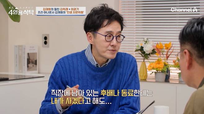 24일 방송된 채널A '절친 토큐멘터리 - 4인용식탁'은 KBS 아나운서 출신 김재원 편으로, 절친 김학래, 이광기가 함께했다.