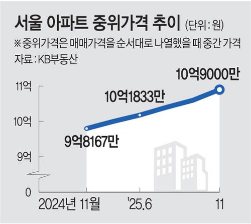 서울의 ‘그냥 아파트 한 채’ 10억9000만원… 이달 상승폭 올들어 최대