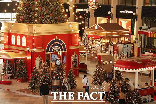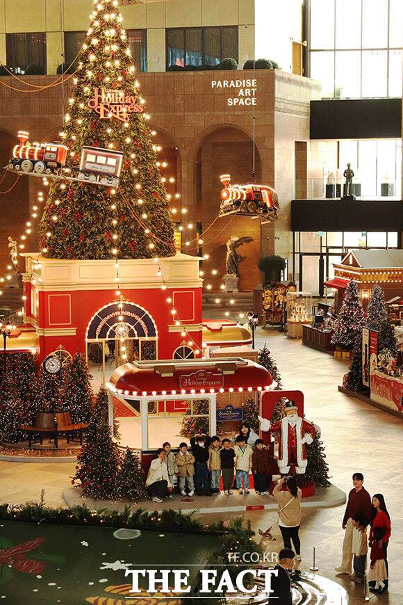 [더팩트ㅣ남용희 기자] 파라다이스시티가 연말을 맞아 '홀리데이 익스프레스' 콘셉트의 크리스마스 마켓을 연 25일 오전 인천 영종도 파라다이스시티 프라자에서 방문객들이 즐거운 시간을 보내고 있다.