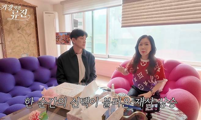 이에 류진은 자신의 경험을 털어놓으며 공감했다. 그는 "2006년 신혼집을 구할 때 6억~7억 정도 돈이 있었다. 잠원이나 반포도 들어갈 수 있었는데 신혼집이라 새집이 좋겠다고 생각해 상암동을 선택했다. 그런데 그 아파트는 10년을 갖고 있었는데도 산 가격이 거의 그대로였다. 반면 반포는 지금은 엄두도 못 낼 정도의 가격이 됐다"고 말했다. 이를 들은 박준금은 "내가 부동산을 공부한 것도 아니고 그냥 내 촉으로 하는 말이지만, 사람들이 살고 싶어 하고 모이고 싶어 하는 지역을 사는 게 맞다고 생각한다"고 조언했다.