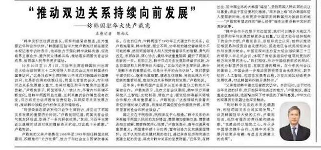 노재헌 주중대사가 중국 인민일보와 인터뷰를 갖고 한·중 관계의 미래에 대한 기대를 드러냈다.
