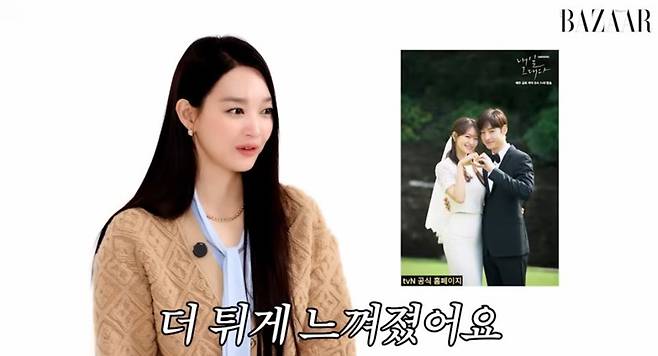 연예계 대표 '로코퀸'답게 '갯마을 차차차' '나의 사랑 나의 신부' 등 다수의 작품에서 다양한 웨딩드레스를 선보였던 그는 "지금 봐도 예쁜 드레스가 있나"라는 질문에 '내일 그대와' 속 심플한 무드가 돋보이는 드레스를 꼽았다.