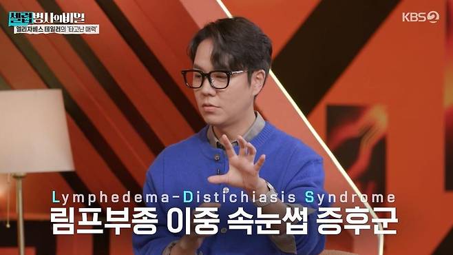 테일러는 '신비로운 보랏빛 눈동자'와 '풍성하고 짙은 속눈썹'으로 아역 시절부터 전 세계를 매료시켰다. 하지만 의사 이낙준은 "사실 병이다. '림프부종 이중 속눈썹 증후군'이라는 유전자 돌연변이 질환이다. 눈썹이 나지 않아야할 곳에 속눈썹이 자라서 눈에 좋지 않다. 기본적으로 림프계 이상이기 때문에 하지 림프 부종이 생길 수 있다"라고 전해 충격을 안겼다.