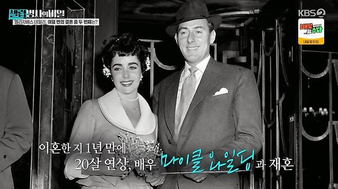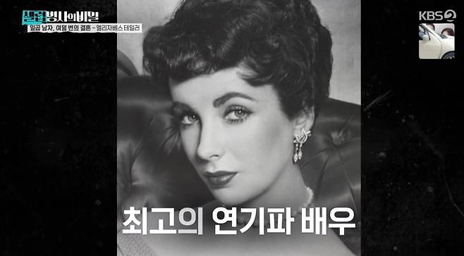 25일 방송된 KBS 2TV '셀럽병사의 비밀'에서는 7명의 남편과 8번의 결혼식을 올린 할리우드 배우 엘리자베스 테일러의 화려한 스캔들 뒤에 숨겨진 진짜 이야기를 조명했다.