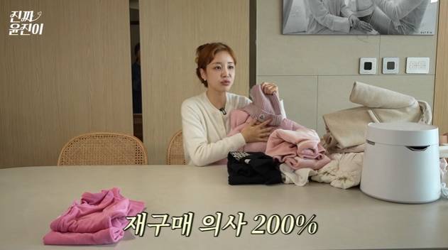 이후 윤진이는 대추차부터 가습기 등 아이템을 소개했다. 이후 아이들의 옷을 두고 베스트, 워스트 템을 공개했고, 이 과정에 "잠바를 진짜 여러개를 많이 봤다"며 명품 브랜드 패딩과 비니를 추천했다.