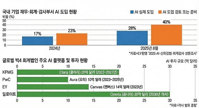 글로벌 4대 회계법인은 앞다퉈 AI에 천문학적인 투자를 진행중이다. 파트너사인 국내 4대 회계법인도 글로벌 파트너사와 연동된 AI 플랫폼 도입을 확대하고 있다.