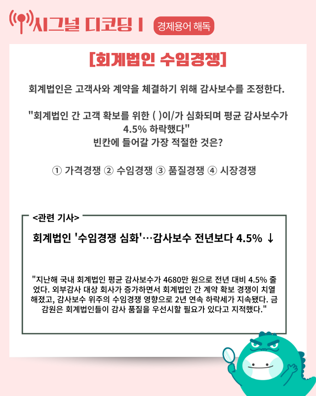 ▶ 기사 바로가기: 회계법인 ‘수임경쟁 심화’···감사보수 전년보다 4.5% ↓