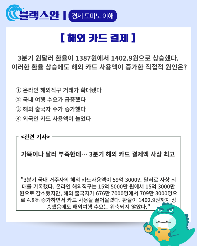 ▶ 기사 바로가기: 가뜩이나 달러 부족한데···3분기 해외 카드 결제액 사상 최고
