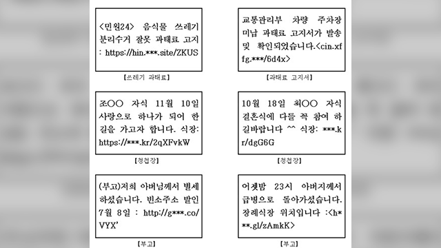 경찰 조사 결과 이들은 2023년 7월부터 올해 6월까지 청첩장, 부고장, 교통법규 위반 알림 문자 등으로 위장해 악성 앱 설치 링크를 피해자들에게 보낸 것으로 드러났습니다.