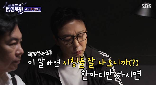 [TV리포트=노은하 기자] 탁재훈이 돌싱들만 모였던 '돌싱포맨'에서 두 명이 재혼을 한 것에 대해 입을 열었다. 지난 25일 방송된 SBS 예능 '신발 벗고 돌싱포맨'에는 가수 우혁, 프로파일러 배상훈, 오마이걸 효정, 운동 크리에이터 말왕이 출연해 다양한 이야기를 나눴다. 탁재훈은 "오늘 왜 조사받으러 왔는지 아냐"라고 말하며 이상민과 김준호를 장난스럽게 몰아세웠다.