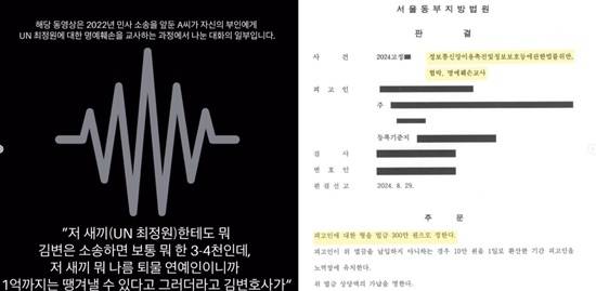 녹취록 속 A씨로 추정되는 인물은 “저 ○○(최정원)한테도 소송하면 보통 3000~4000(만원)인데, 저 ○○ 뭐 나름 퇴물 연예인이니까 1억까지는 땡겨낼 수 있다고 하더라. 김 변호사가 그러더라고”라는 발언을 하는 등 금전적 이득을 목적으로 소송을 준비했다는 정황이 담겨 있다.