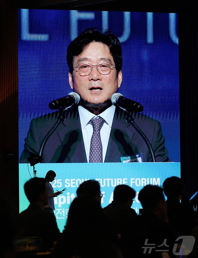 (서울=뉴스1) 박지혜 기자 = 유승호 머니투데이방송 대표이사가 26일 서울 중구 대한상공회의소 국제회의장에서 열린 2025 서울퓨처포럼에서 개회사를 하고 있다. 2025.11.26/뉴스1
