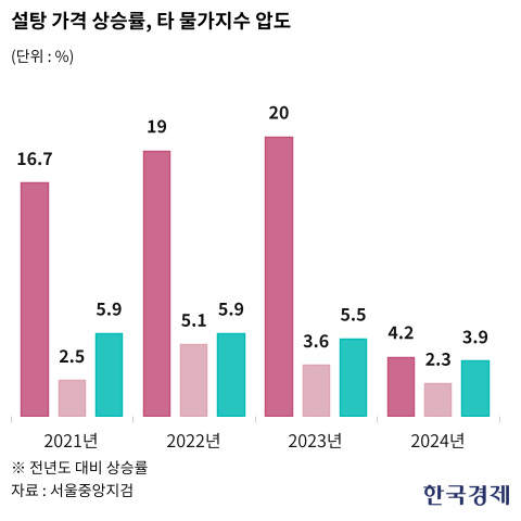 검찰은 이러한 담합이 설탕 가격 급등으로 이어졌다고 지적했다. 설탕 가격은 담합 전인 2020년 대비 2023년 10월 기준 최대 66.7%까지 상승했고, 지난 4월까지도 55.6%에 달했다. 2020년부터 2024년까지 누적 상승률은 59.7%로, 같은 기간 소비자물가 상승률(14.2%)과 식료품 및 비주류 음료 물가 상승률(22.9%)을 크게 웃돌았다.