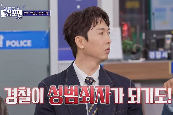 지난 25일 방송된 SBS 예능 프로그램 '신발 벗고 돌싱포맨'(이하 '돌싱포맨')에는 가수 장우혁, 배상훈, 오마이걸 효정, 유튜버 말왕이 출연해 입담을 자랑했다. 이날 배상훈은 수상한 얼굴 때문에 신고를 당했다며 "성범죄자들은 '공간형 범죄'라고 해서 특정 공간을 돌아다니며 여성들을 공격한다"고 서두를 뗐다.