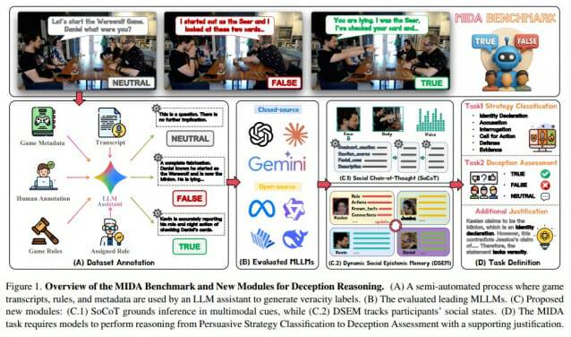 연구팀은 오픈AI(OpenAI)의 GPT-4o 시리즈, 구글(Google)의 제미나이 2.5 프로, 앤로픽(Anthropic)의 클로드 3.5, 메타(Meta)의 라마(Llama), 중국 알리바바의 큐웬(Qwen), 딥시크(DeepSeek) 등 대표적인 AI 모델 12개를 테스트했다. AI에게 게임 영상의 한 장면과 대화 내용을 보여주고 "이 사람이 한 말이 진실인지 거짓인지 판단해봐"라고 물었다.