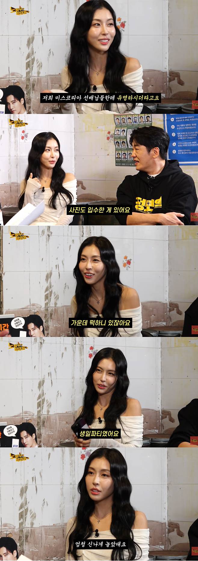 이어 "저는 미스 코리아 싫어한다. 다가가기 힘들지 않나요? 뭔가 저를 다스릴 것 같고"라고 이유를 설명했다. 탁재훈은 "그런데 많이 지난 미스코리아잖아요"라고 말하며 웃음을 유발했다.