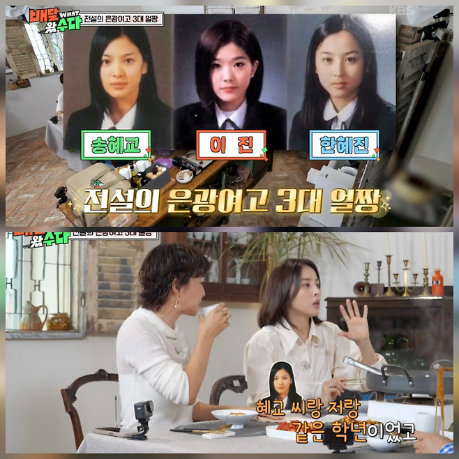 이영자와 김숙은 "은광여고 3대 얼짱 아니었느냐"며 한혜진·송혜교·이진을 언급했고, 한혜진은 "혜교 씨와 난 같은 학년, 이진 선배님은 한 학년 위"라며 인연을 전했다.