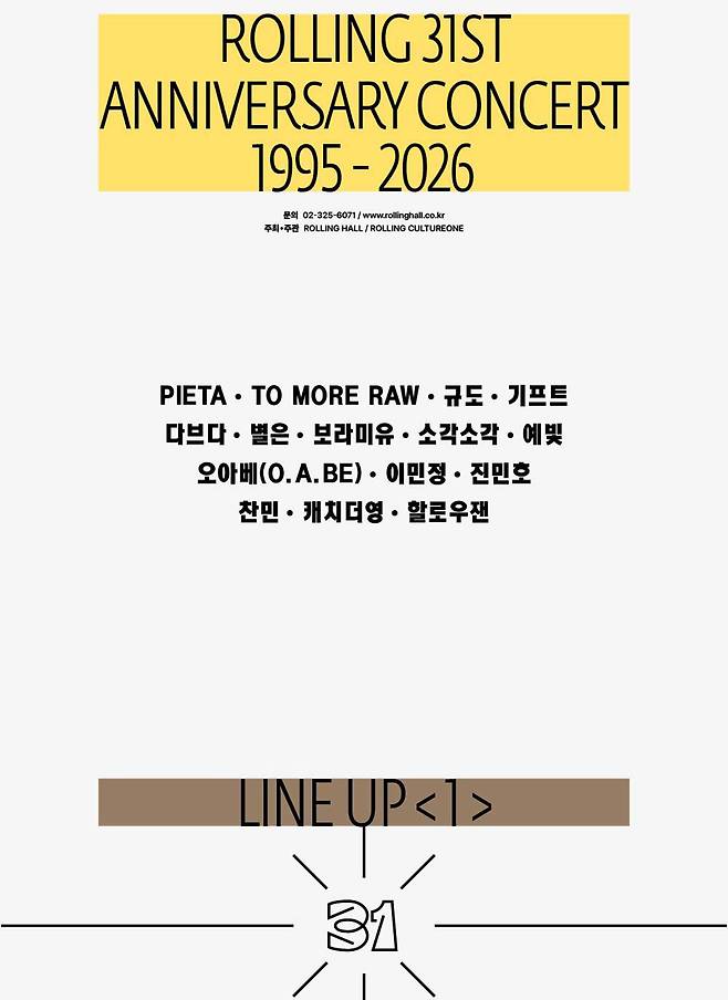 한편 롤링홀 31주년 기념공연의 세부 일정은 순차적으로 공개된다.