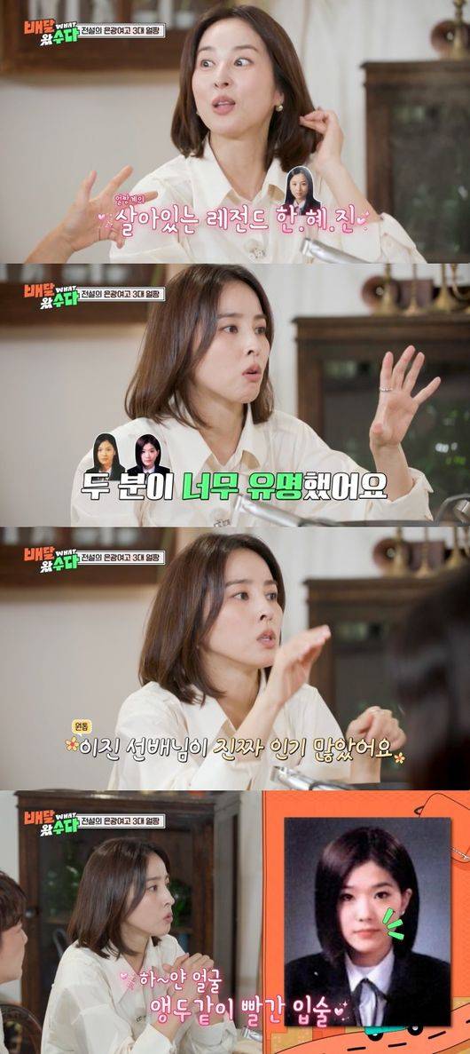 배우 한혜진이 '은광여고 3대 얼짱' 중 이진의 미모를 극찬했다.