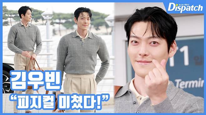 이날 김우빈은 좌중을 압도하는 피지컬로 공항을 환하게 밝혔다.