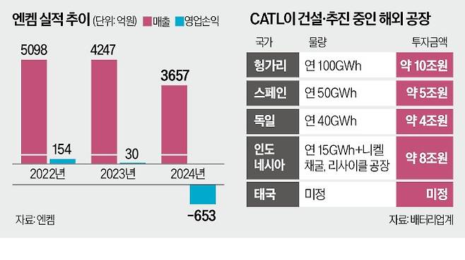반면 엔켐은 폴란드(연간 15만t)와 헝가리(연간 7만t)에 대형 공장을 돌리고 있다. 업계 관계자는 “중국 소재업체는 중국 정부 보조금이 줄어들 것을 우려해 해외 진출을 꺼린다”며 “CATL이 유럽에 대규모 공장이 있는 한국 업체를 선택한 이유”라고 말했다.