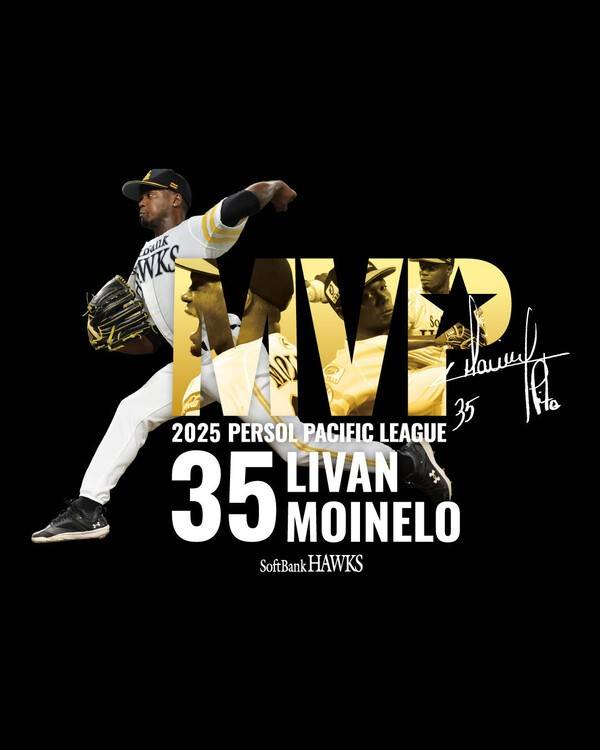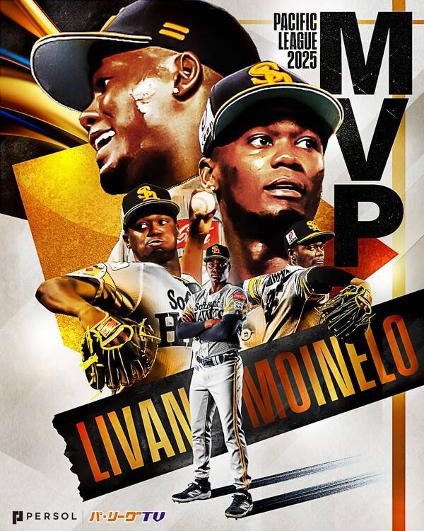후쿠오카 소프트뱅크 호크스 리반 모이넬로는 26일 일본 도쿄에서 열린 'NPB 어워즈 2025'에서 퍼시픽리그 MVP에 선정됐다. 시상식에 불참한 모이넬로는 고국 쿠바에서 영상 메시지를 통해 수상 소감을 남겼다.