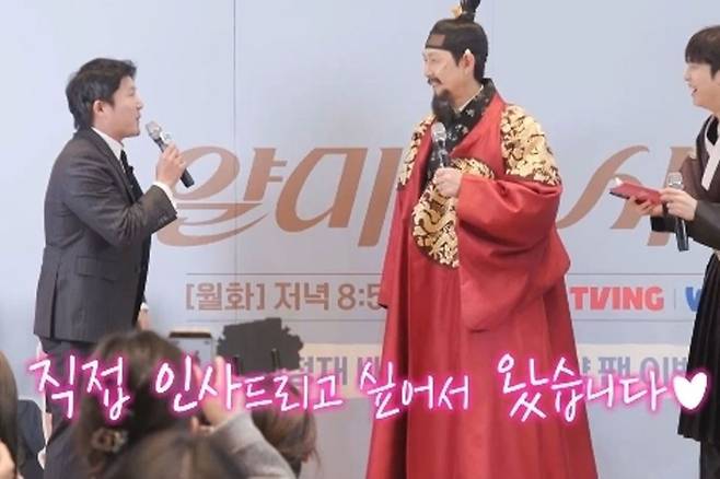 현장을 찾은 조세호는 "수양대군 만나고 싶었다. 시청률 공약을 지켰다고 해서 찾아왔다"고 인사해 웃음을 자아냈다. 조세호는 공약을 제안한 장본인으로, 당시 유재석이 "오랜만에 드라마를 하는데 시청률이 대박 났으면 좋겠다"고 응원하자 조세호가 직접 '수양대군 분장 사인회'를 제안했다. 이 같은 제안에 이정재는 "첫 회가 3% 넘으면 하겠다. 어디서 사인회를 하면 되냐. 정해달라"라고 흔쾌히 승낙했다. 이에 조세호는 "오랜만에 명동에서 어떠냐"고 물었고, 이정재가 "첫 회 3%가 넘으면 수양대군 분장으로 가겠다"고 공약을 세운 것이다. 이정재는 '유퀴즈' 방송 전 제작발표회에서 제작진과 임지연이 30% 달성 공약을 세울 당시에도 "아직 방송은 안 됐지만 '유퀴즈'에서 조세호 씨가 시청률 공약을 걸라고 했다. 방송에서 확인해 주시면 좋겠다"며 궁금증을 자아냈다.