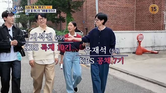 1991년 제1회 KBS 대학개그제 공채 7기로 데뷔한 유재석은 지석진보다 두 기수 선배다.