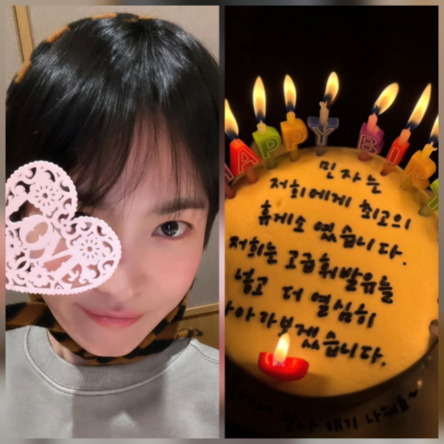 앞서 송혜교는 생일 다음날 "꽃들과 선물들 잘 받았다. 행복하게 보냈다. 좋은 작품으로 보답하겠다"고 남기며 케이크 인증샷도 공개했다.