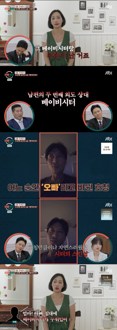 이후 아내가 집을 나간 사이, 남편은 아이를 혼자 돌보는 것이 힘들다며 베이비시터를 고용했다. 그런데 이 베이비시터가 바로 두 번째 불륜의 상대였다. 남편은 중고 거래 앱을 통해 베이비시터를 구했는데, 연세가 있는 사람이 아닌 젊은 싱글맘을 선택한 것으로 알려졌다.