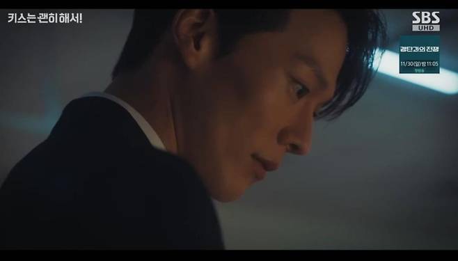 이날 유하영(우다비 분)과 키스하는 김선우(김무준 분)를 목격한 공지혁은 고다림이 이 장면을 못보게 하기 위해 그를 끌어안았다.