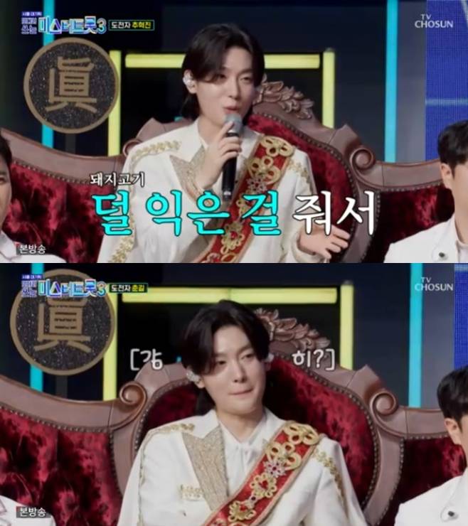 또한 이날 방송에서는 웃음 터지는 에피소드도 쏟아졌다. 김용빈은 “며칠 전에 회식할 때 혁진이가 고기를 구워줬다. 그런데 혁진이가 안 익은 걸 줘서 배탈이 났다. 하루 종일 못 먹고 있다”고 폭로했다. 이에 추혁진은 “다 같이 먹었는데 용빈이 형만 약해서 그런 거다”라고 받아치며 티키타카를 완성했다. 춘길 역시 “그날따라 추혁진이 돼지고기는 레어로 먹어야 한다고 하더라”며 거들어 스튜디오가 웃음바다가 됐다.